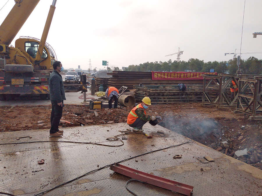 嚴抓復(fù)工后的疫情防控工作。圖為2020年2月24日樟樹葛玄路臺埠中橋便道鋼便橋施工現(xiàn)場